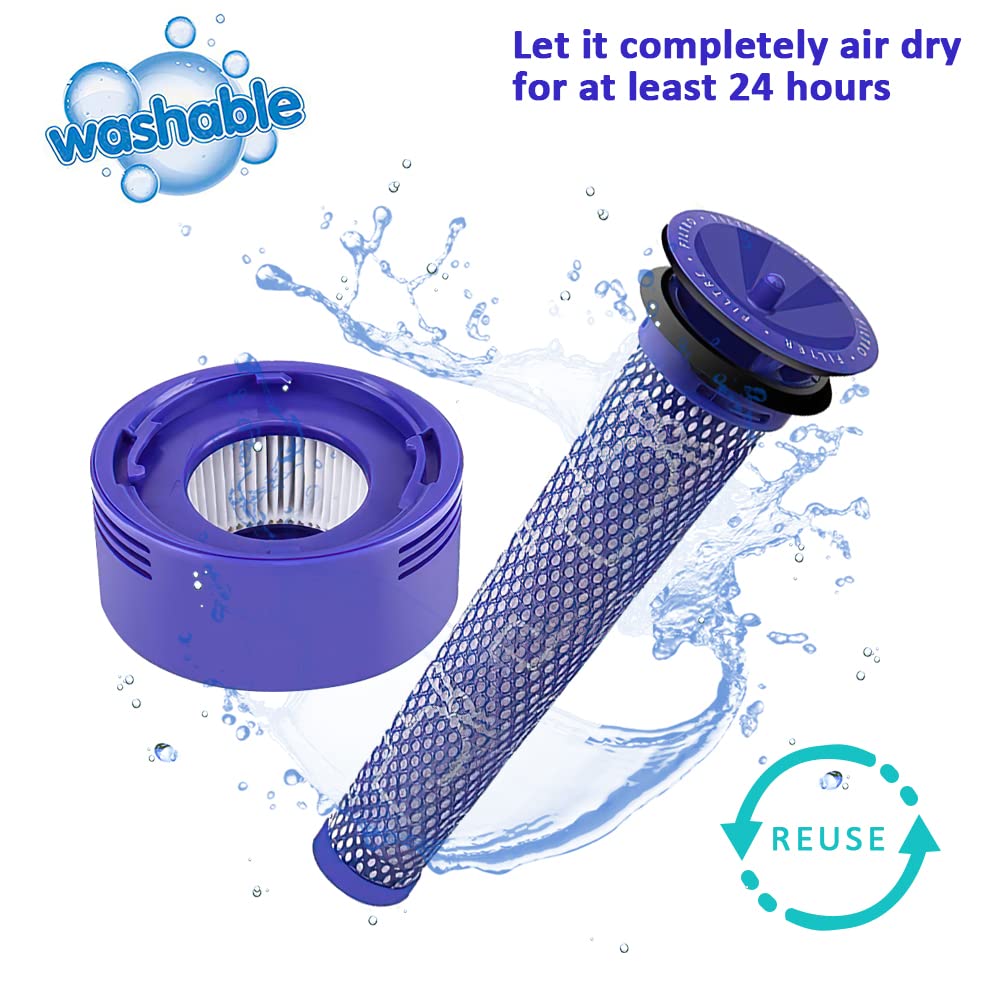 - Washed and Reused: The dyson v7 filter should be washed with cold water without detergent, and let it completely air dry for at least 24 hours before reusing them. It should be washed at least once a month, to ensure your vacuum works properly and optimally, recommend replacing the filter every 2-3 months