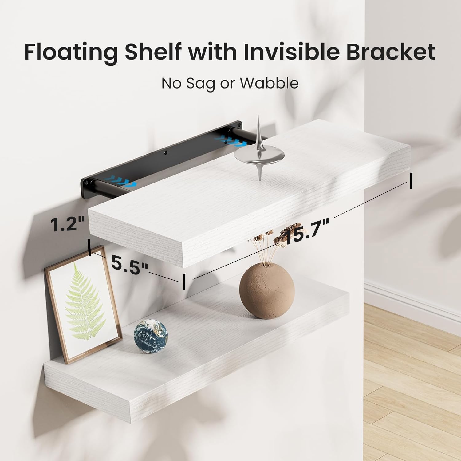 - Invisible & Sturdy Metal Brackets: Enhanced metal brackets matched with precisely made screws will affix the floating shelves on the wall firmly without sliding or swaying. 1.2-inch thick wood boards can hold up to 20 lbs and safely hold collectibles like photos, trophies, small plant pots, etc.