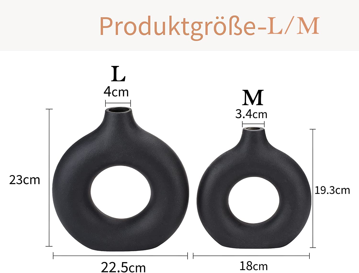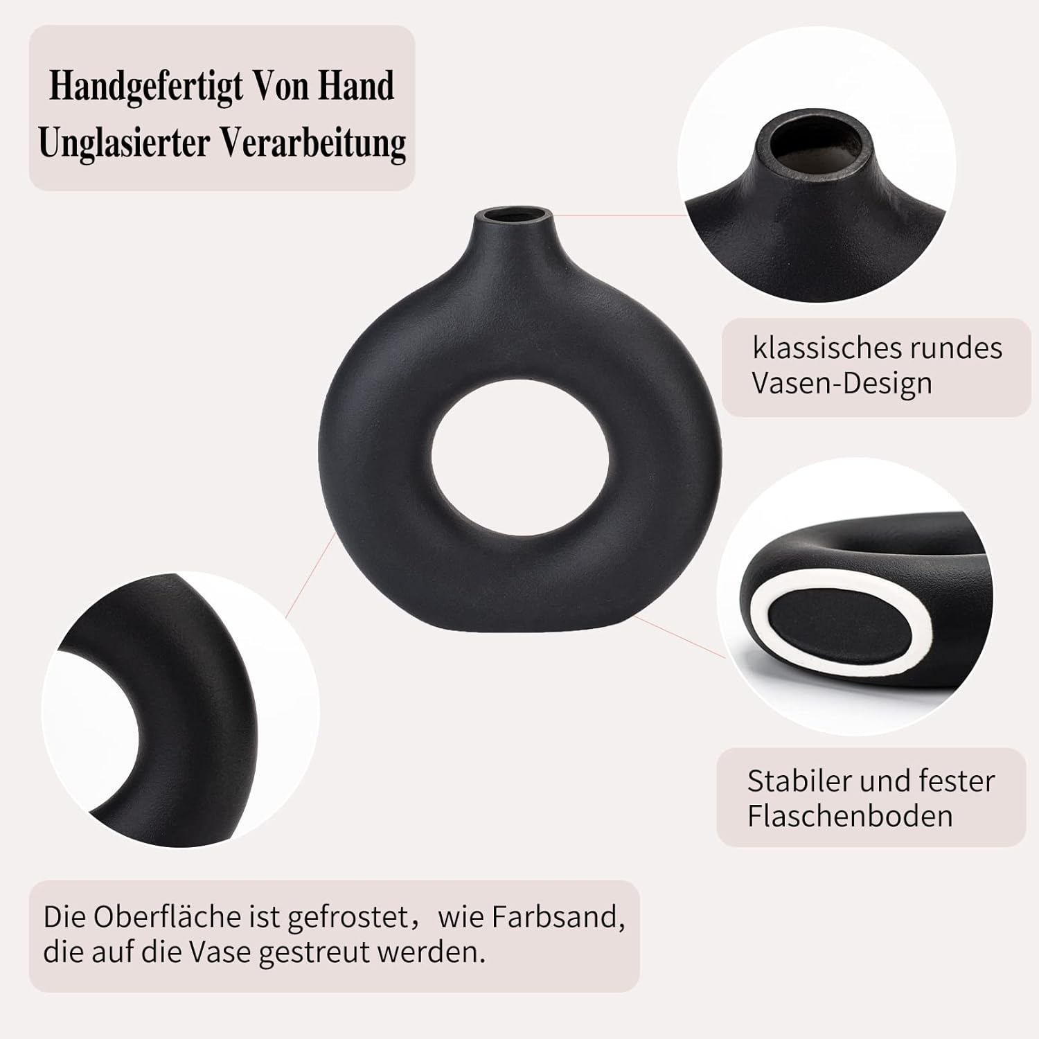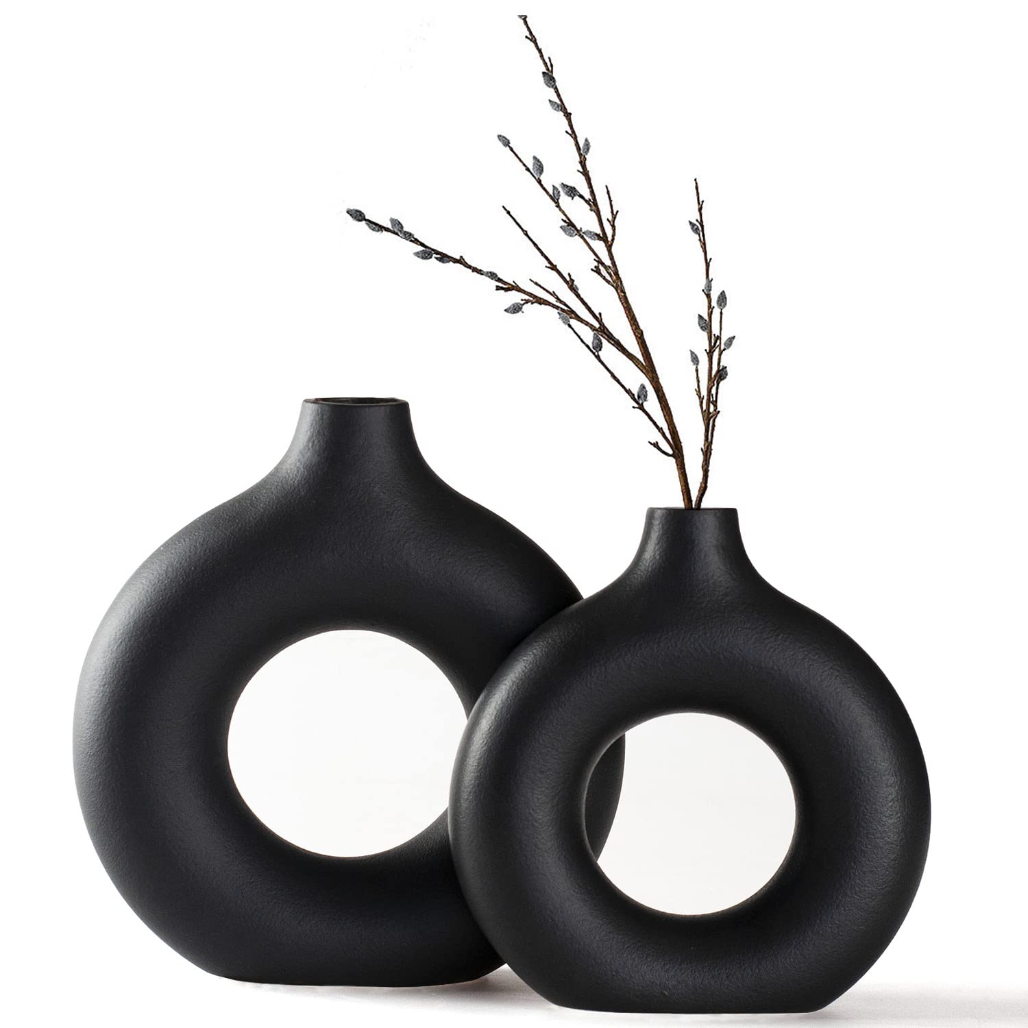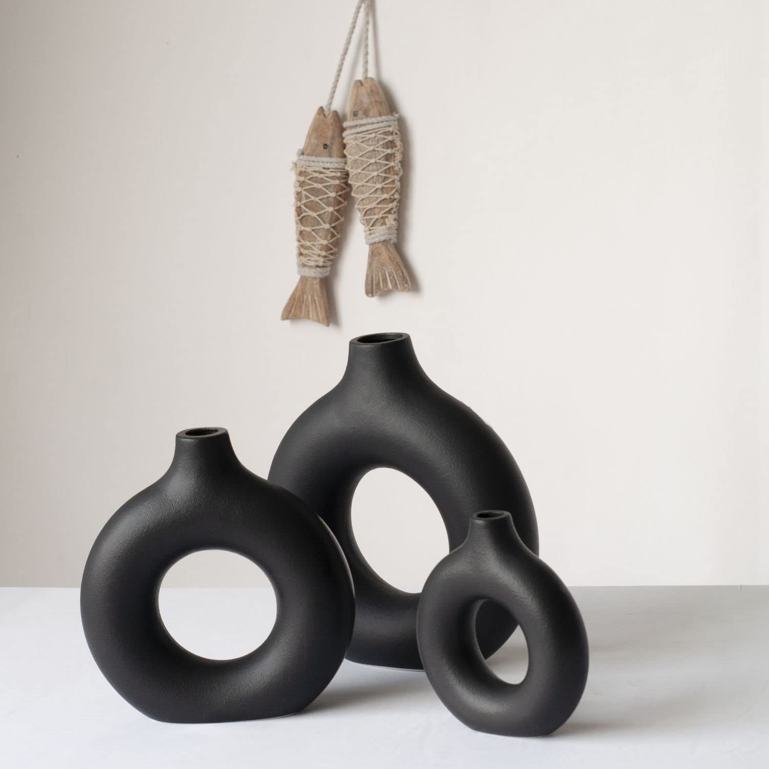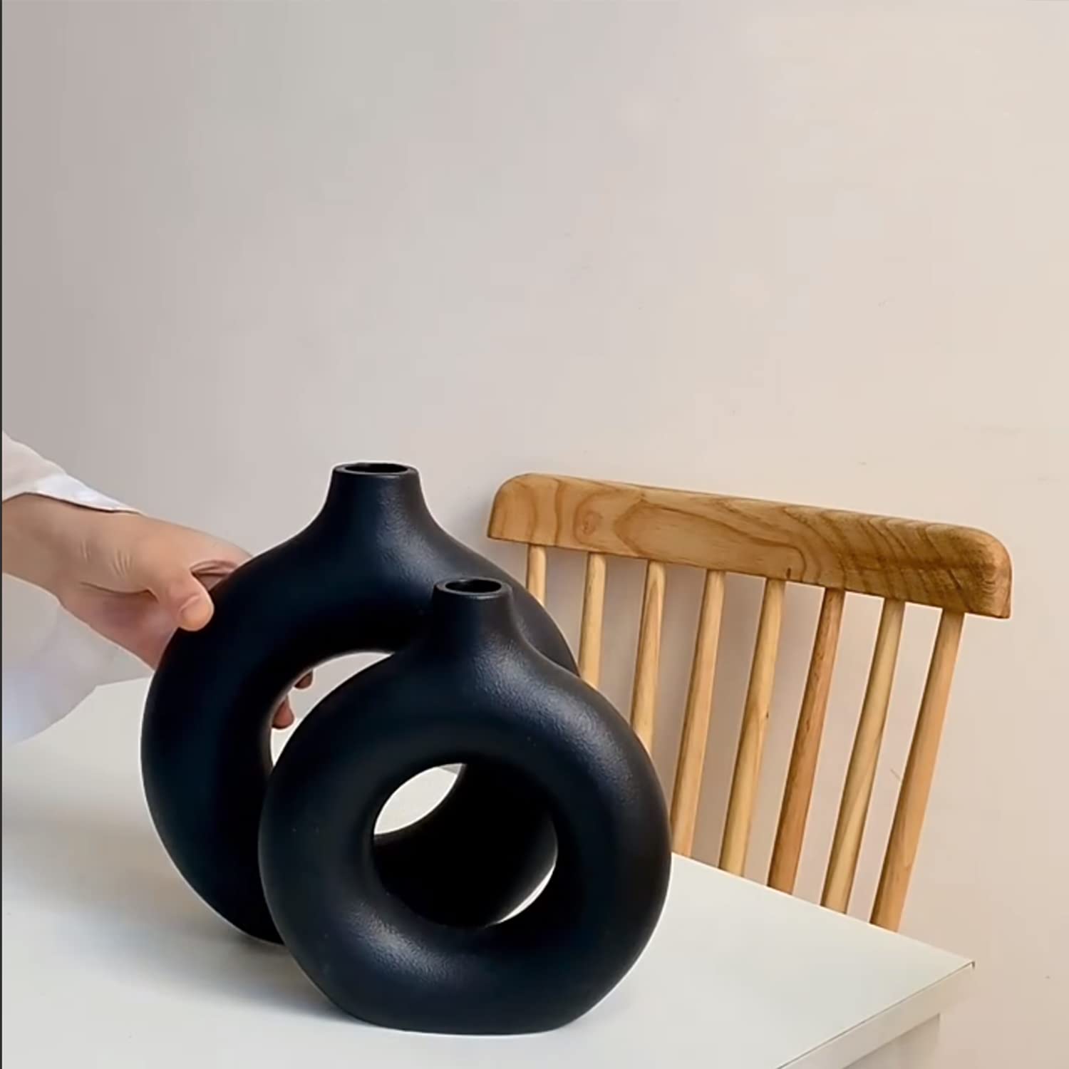 - Donut Design: The decorative vase is designed with a unique donut shape that differs from the traditional vase. The hollowed out center makes it not only a flower vase, but also a work of art.