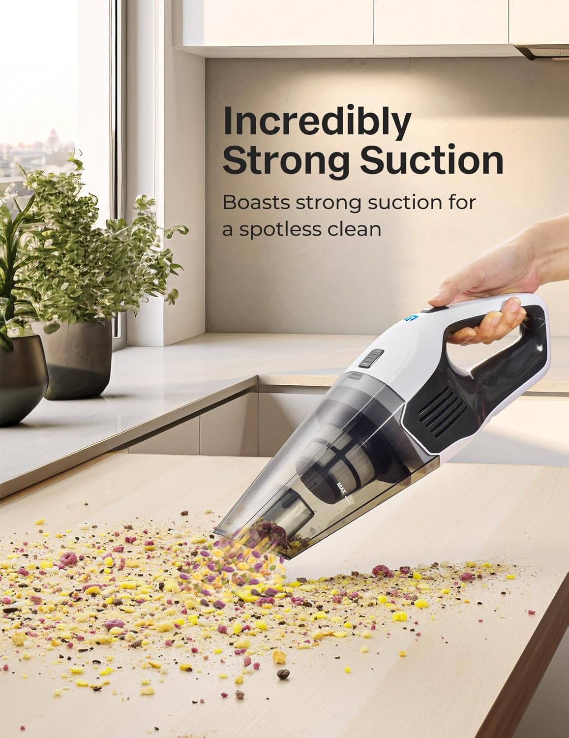 Great handheld vacuum! Powerful, lightweight, and very easy to use. Perfect for quick clean-ups at home and extremely convenient in the car. Strong suction and good battery life. Definitely recommend!