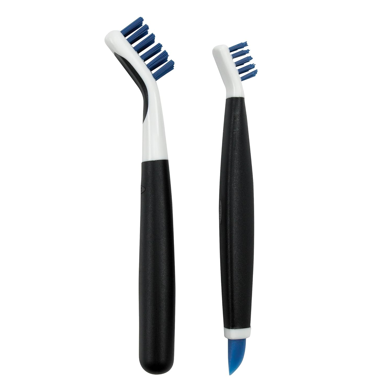 - The OXO Good Grips Deep Clean Brush Set features two tools for scrubbing those hard-to-reach places. Both Brushes include sturdy nylon bristles and comfortable non-slip grips. The Large Brush is sized and angled for cleaning grout, shower-door tracks and more. A soft thumb pad on the back of the head allows for optimal comfort while applying maximum force. The Small Brush features a compact bristle head and pointed profile, great for cleaning in and around fixtures, thin grout lines and other tight spaces. The Small Brush also includes a built-in Wiper Blade for removing grime inside drains and other crevices.