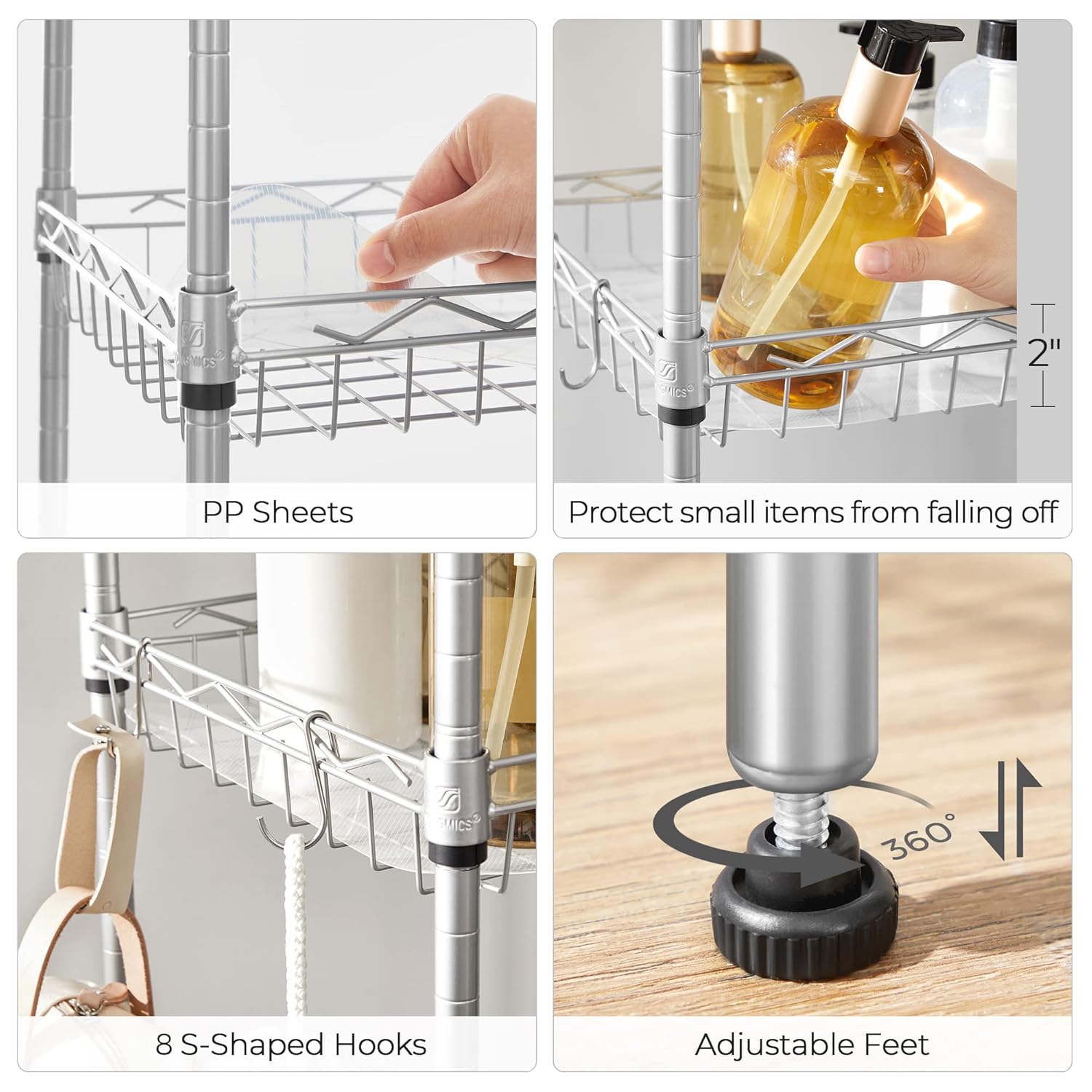 - [Shelf Liners for More Practical Uses] We never compromise on the details. The easy-to-clean PP Shelf liners not only ensure you have a flat surface on each tier, but also protect your small items from falling off, making your organization trouble-free